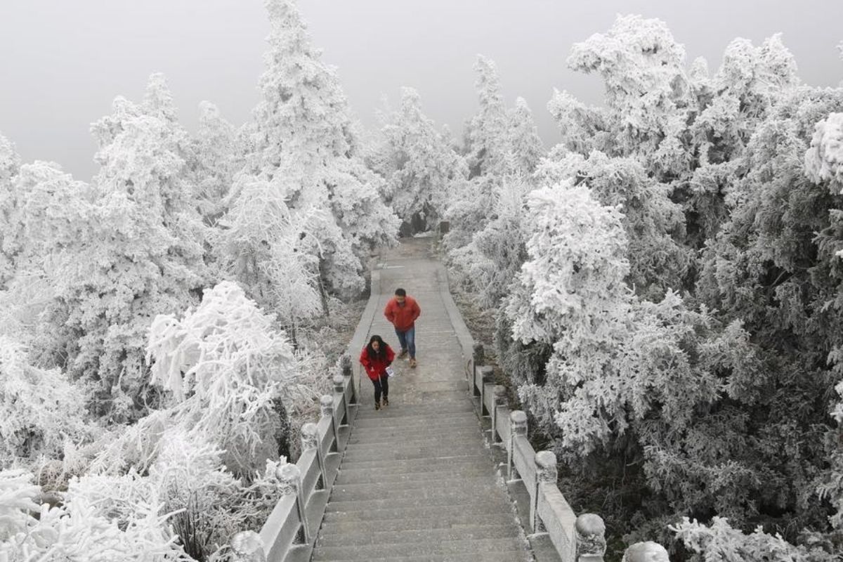 Trương Gia Giới (Zhangjiajie) ở tỉnh Hồ Nam, nổi tiếng với những cột đá sa thạch khổng lồ, là nguồn cảm hứng cho dãy núi Hallelujah trong phim Avatar. Tháng 12 và tháng 1 là thời điểm lý tưởng để chiêm ngưỡng vẻ đẹp này khi tuyết phủ trắng xóa, biến Trương Gia Giới thành một thế giới băng giá, huyền ảo và siêu thực.
