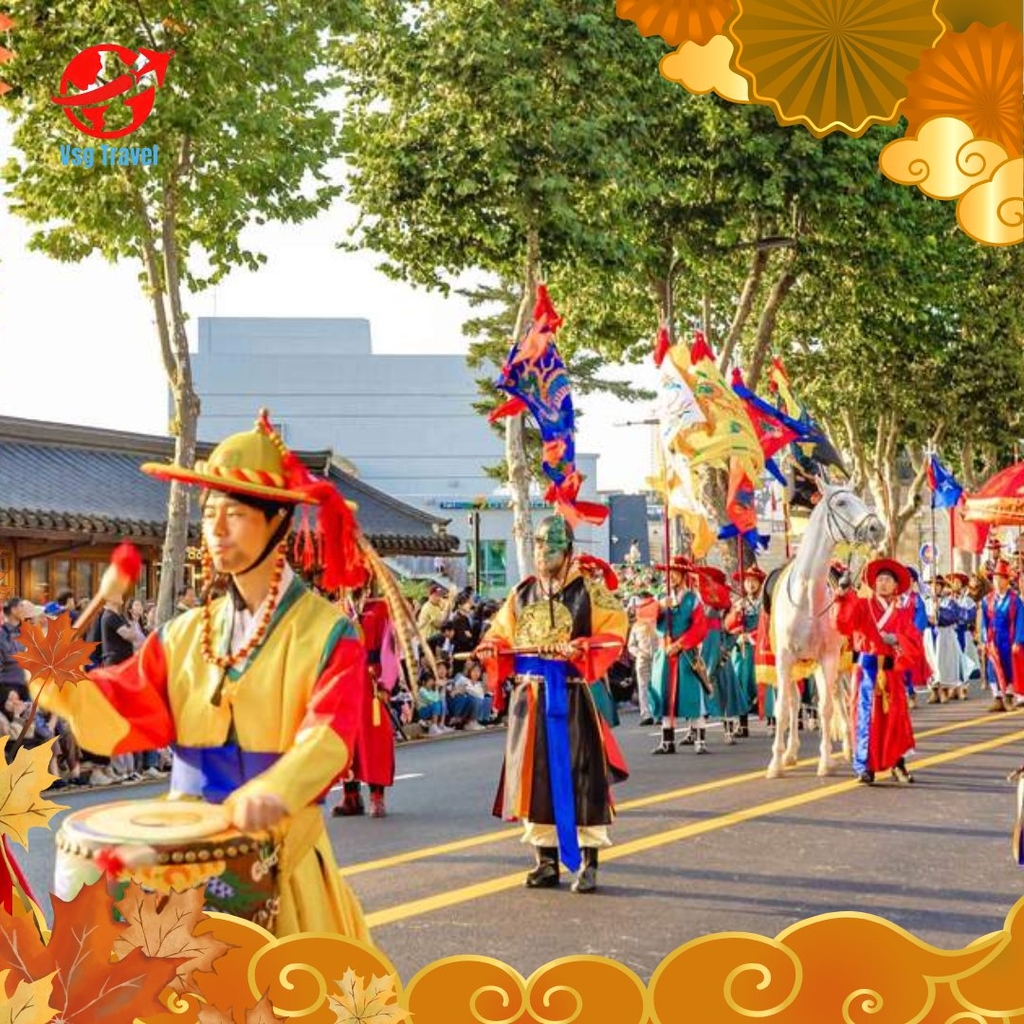 Diễu Hành và Biểu Diễn Văn Hóa. Nhiều khu vực tổ chức diễu hành, các buổi biểu diễn âm nhạc và múa truyền thống (như múa quạt, múa nón, múa mặt nạ,...) nhằm tái hiện lại di sản văn hóa phong phú của Hàn Quốc.