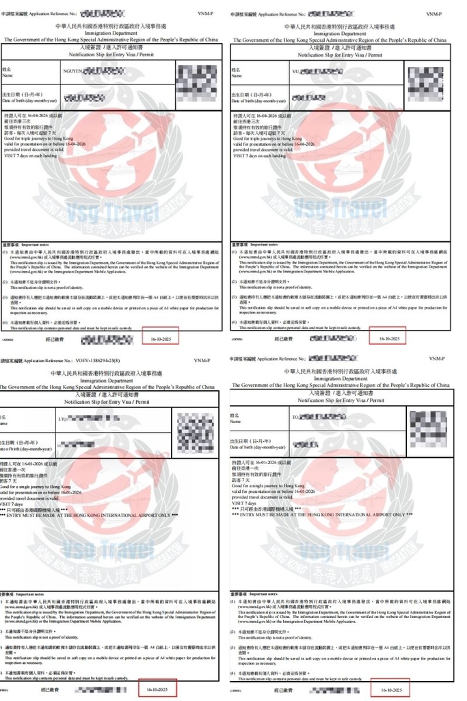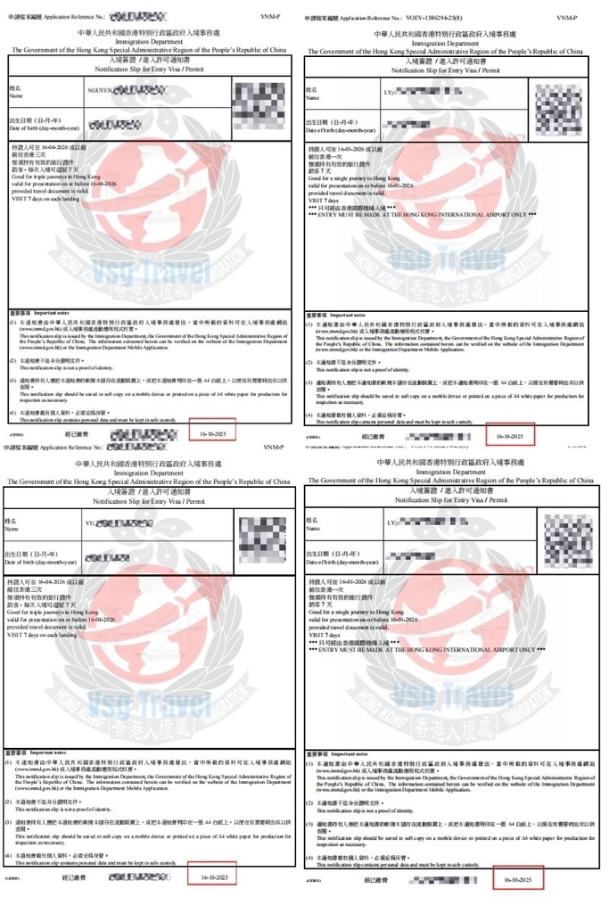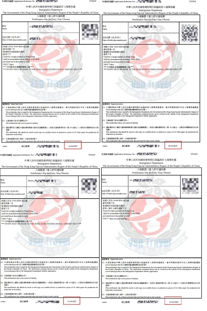 VISA Sài Gòn xin được thông báo 16 bộ hồ sơ của các Quý khách hàng đã được Lãnh sự quán Hồng Kông chính thức phê duyệt và cấp VISA!