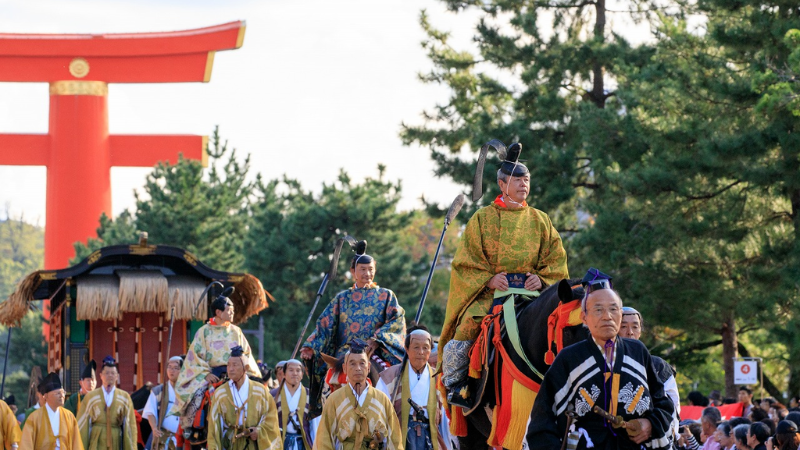 Đoàn diễu hành dài hơn 2km với hơn 2.000 người tham gia, hóa thân thành các nhân vật lịch sử lẫy lừng qua các thời kỳ từ Thời kỳ Minh Trị ngược về Thời kỳ Heian. Du khách sẽ được chiêm ngưỡng những bộ trang phục, vũ khí và phong cách sống của người Nhật Bản qua hơn 1.200 năm lịch sử.