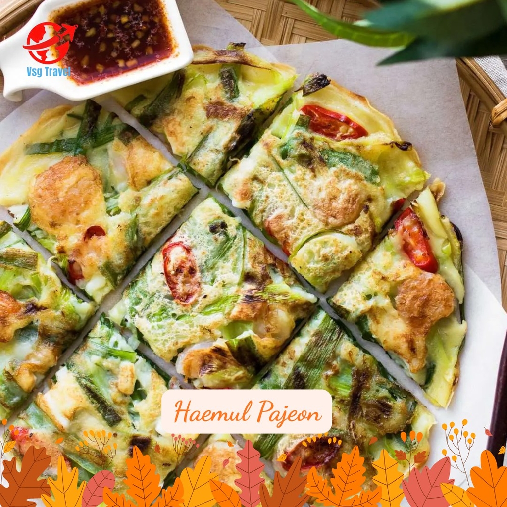 6. Haemul Pajeon (Bánh Xèo Hải Sản và Hành Lá). Giòn Tan Trong Mùa Thu