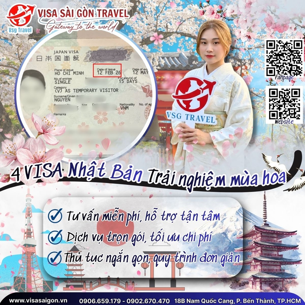Sẵn sàng cho hành trình đầy chất thơ! Với tấm VISA này, các bạn sẽ được đắm mình trong không gian huyền ảo của những rặng anh đào hồng nhạt bao quanh núi Phú Sĩ, hay dạo bước giữa những khu vườn cổ kính tại Kyoto. Một trải nghiệm mùa hoa độc đáo và tinh tế đang chờ đợi để được lưu giữ trong những khung hình của bạn! ![]()