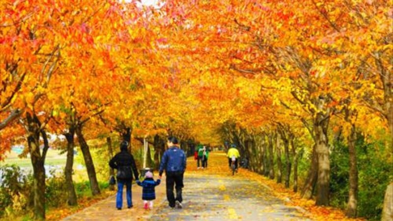 Mùa thu Hàn Quốc gắn liền với hình ảnh của những bộ phim tình cảm lãng mạn, nơi con đường rợp bóng cây ngân hạnh vàng óng, tạo nên khung cảnh thơ mộng và dịu dàng.
